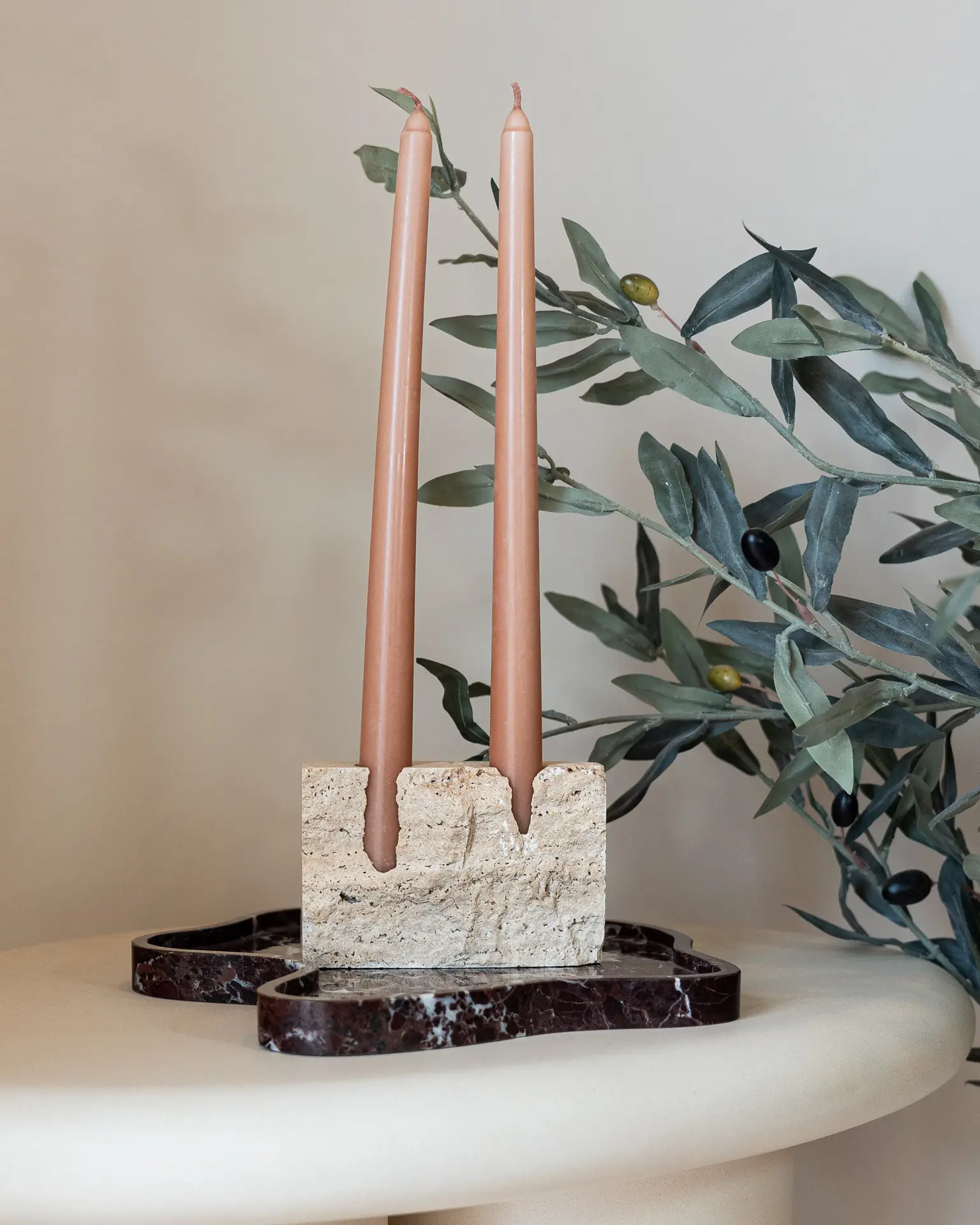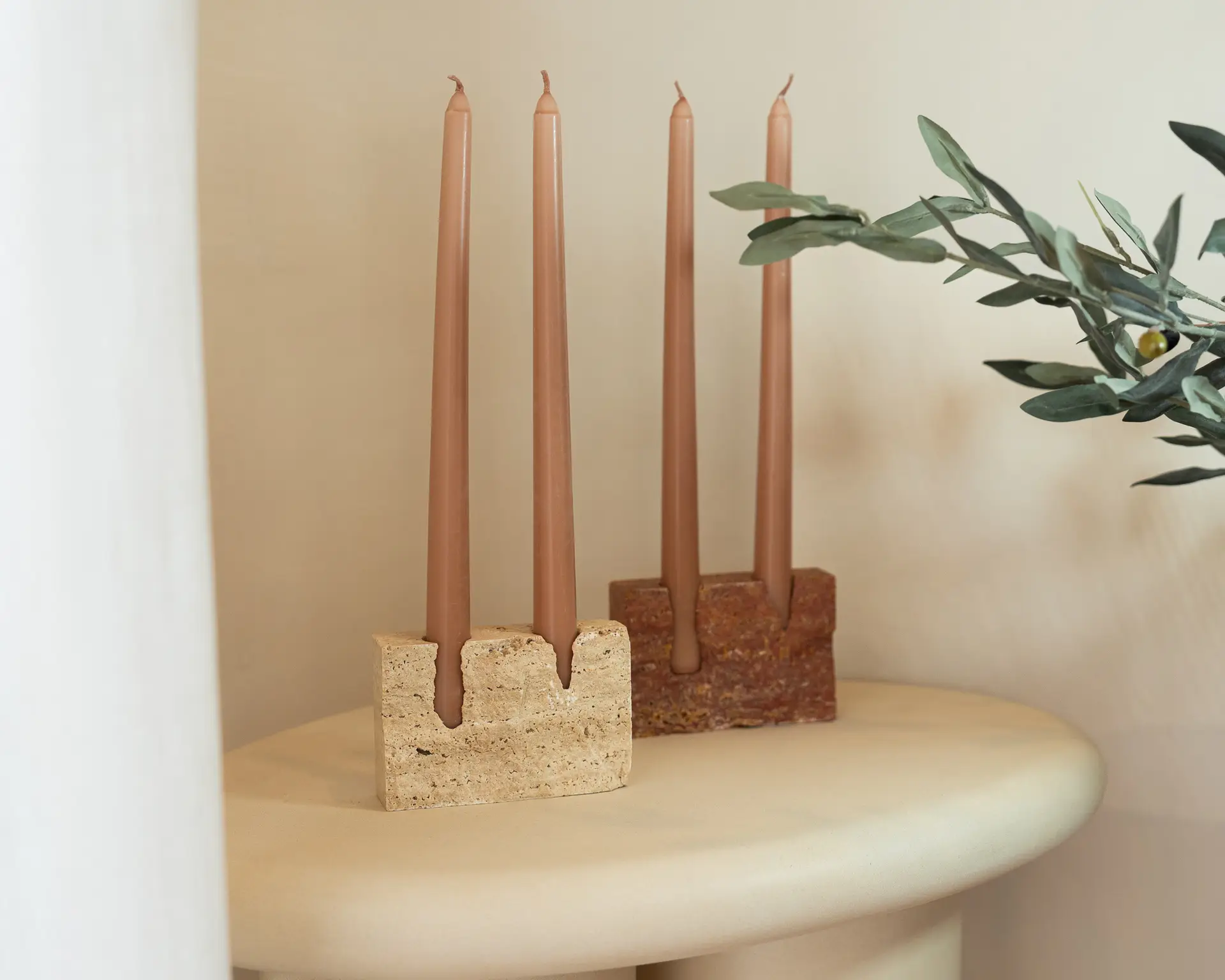 What makes these candle holders unique is the fact each piece is different due to the natural variations of the travertine. They truly make a statement in the room.